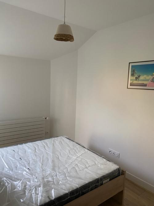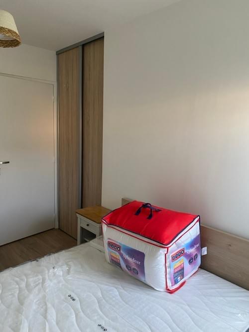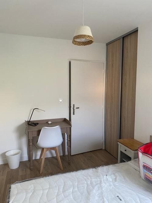 Chambre "Georges V" meublée de 10 m2 avec un lit de 2 personnes, placard aménagé, bureau et chaise.
